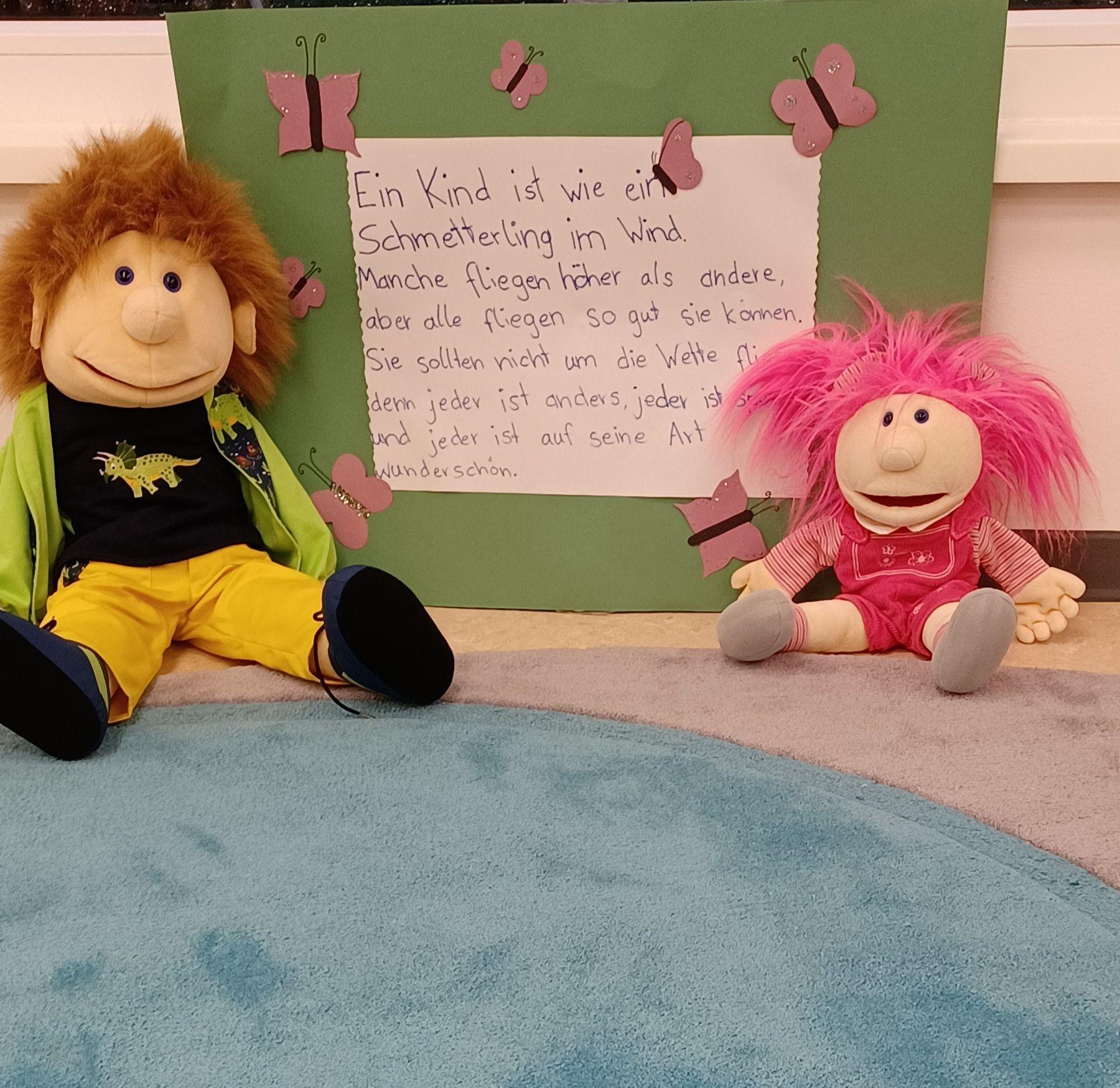 Sprache ist die Grundlage menschlichen Handelns und Denkens. Besonderen Wert legen wir deshalb auf die Förderung der sprachlichen Entwicklung unserer Kinder. Dies geschieht im alltäglichen Tun durch eine sprachförderliche Umgebung und eine sprachanregende Alltagsgestaltung, wie zum Beispiel durch spontane Rollenspiele, durch Singen, Reimen, Geschichtenerzählen und Vorlesen. Es geschieht aber auch durch gezielte Angebote zur Sprachförderung, die die Lust und das Interesse am sich Ausdrücken, den Spracherwerb und das Sprachverstehen fördern.